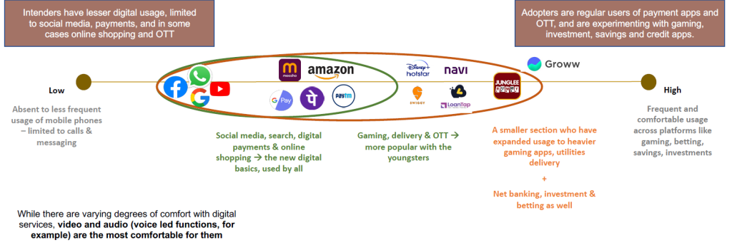 Categories of DFS users – adopter (familiar with/ have used digital payments and have/ completed a digital loan in the last year) and intender (familiar with/ have used digital payments) Households with an annual income of less than Rs. 5 lakh |