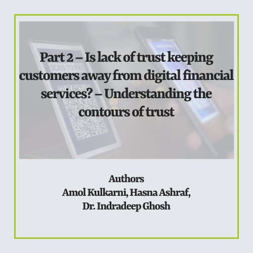 In our previous blog, we discussed how the intent to trust being implicated in the act of trusting makes it difficult to define trust. Instead, a more feasible approach would be to study the factors that a potential customer (for adoption) or an existing customer (for continued usage) can base their expectations of DFS on or in other words, the proximate grounds to trust DFS. In this blog, we attempt to identify some of these proximate grounds of trust.